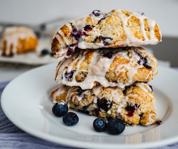 Easy Blueberry Scones with Vanilla Icing Looking for a recipe for easy blueberry scones? These scones are tasty and quick to make — perfect for busy moms on-the-go. They have a cozy comfort-food-feeling that everyone in the family will love.