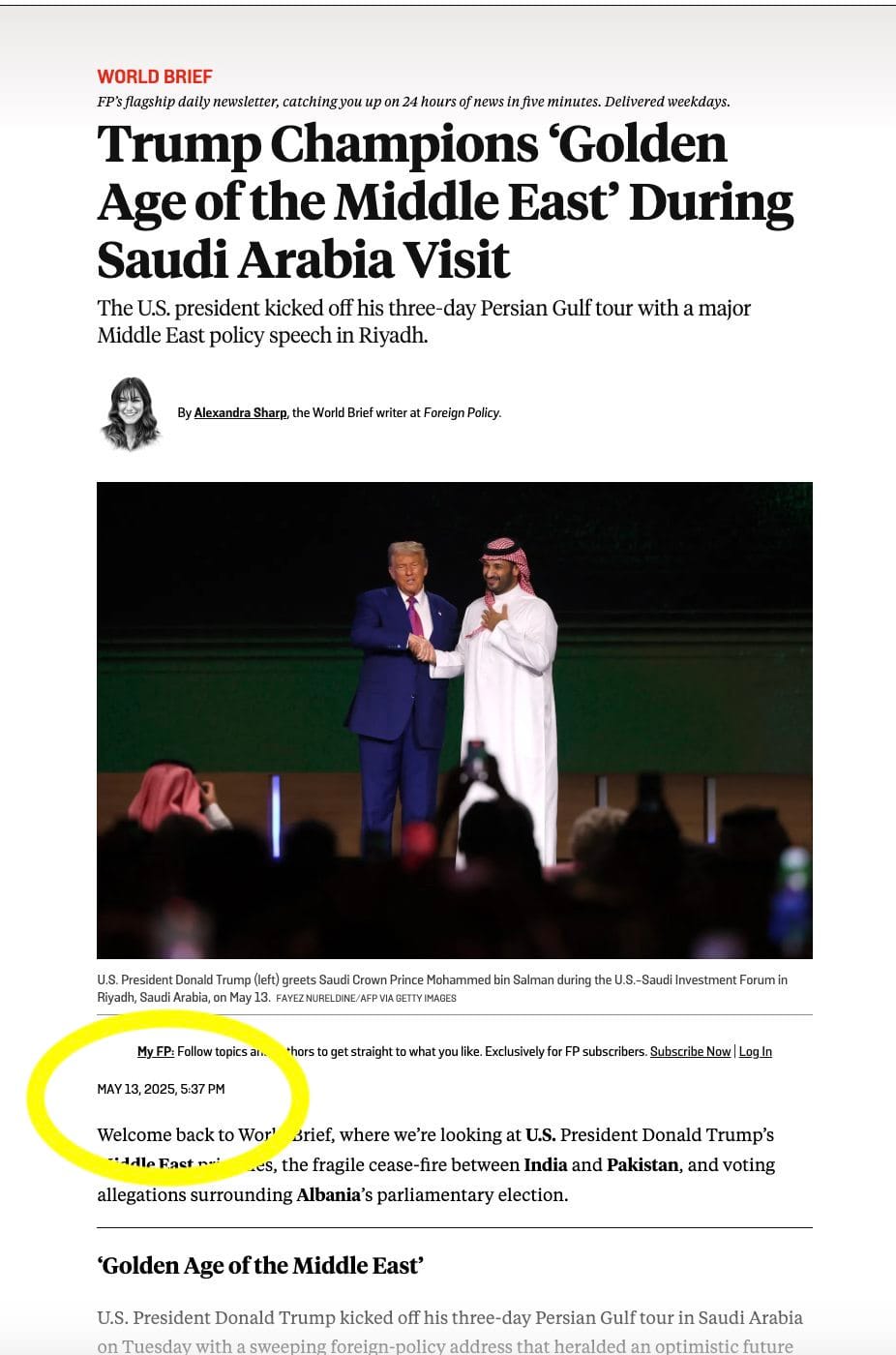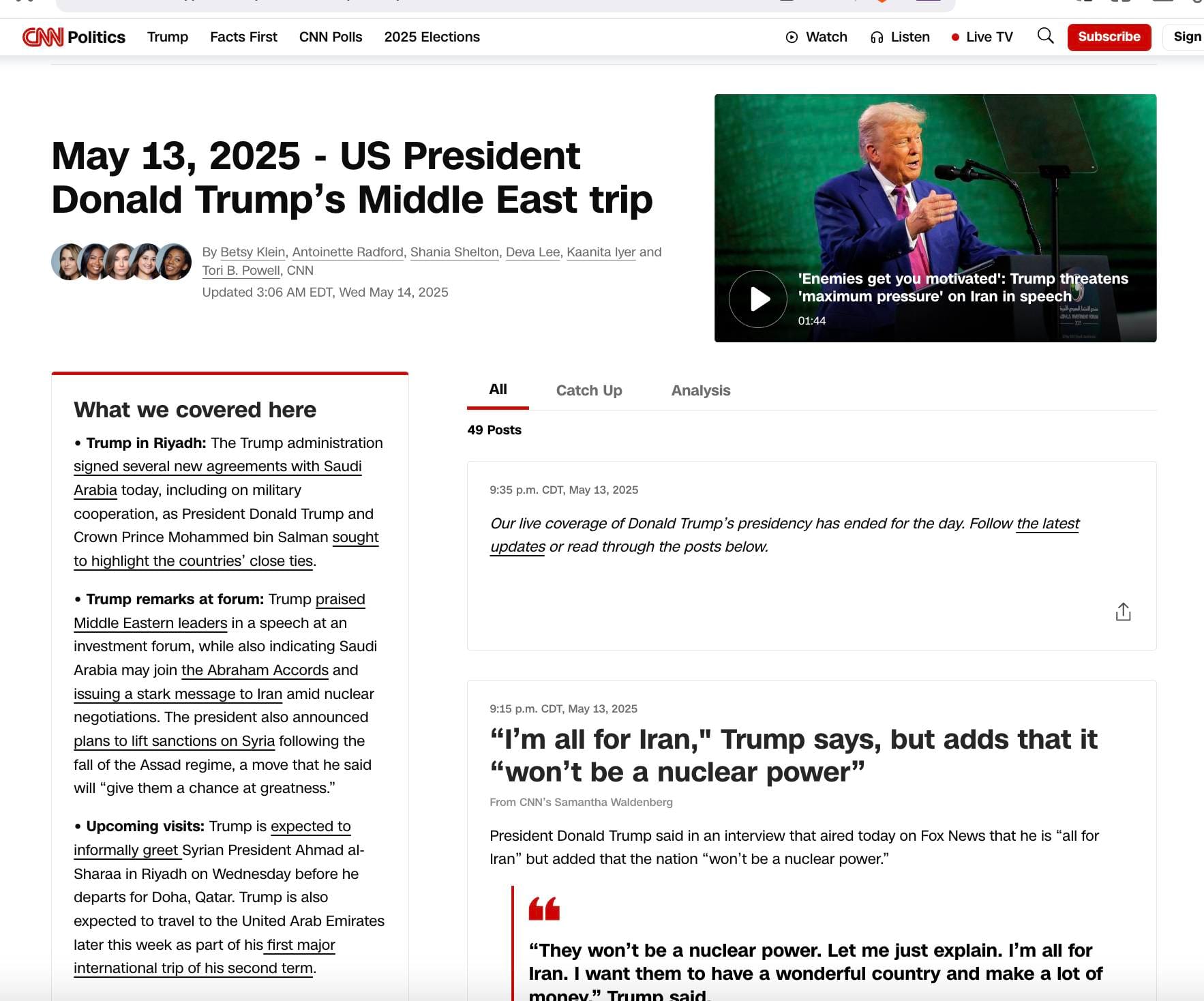 On May 13, 2025, this year, President Trump went to Saudi Arabia.