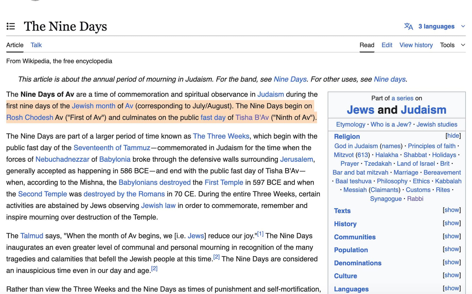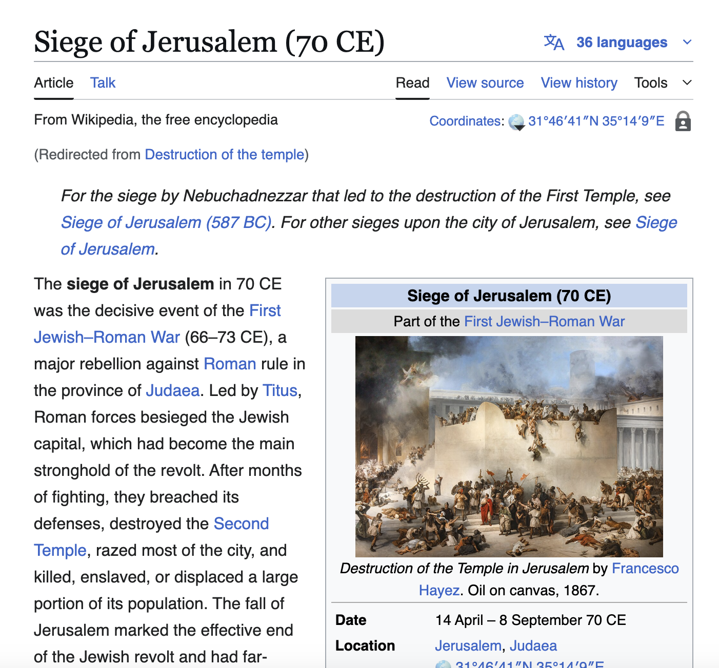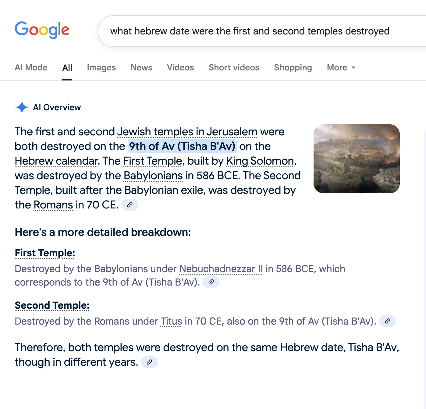 Both times the destruction of the Jewish temple in Jerusalem occurred on the Hebrew date, Tisha B'Av.