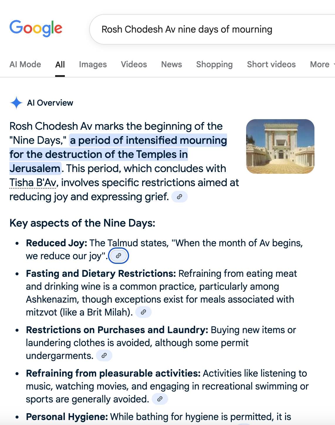 Rosh Chodesh Av which is the beginning of the Nine Days of Mourning which leads up to Tisha B'Av.