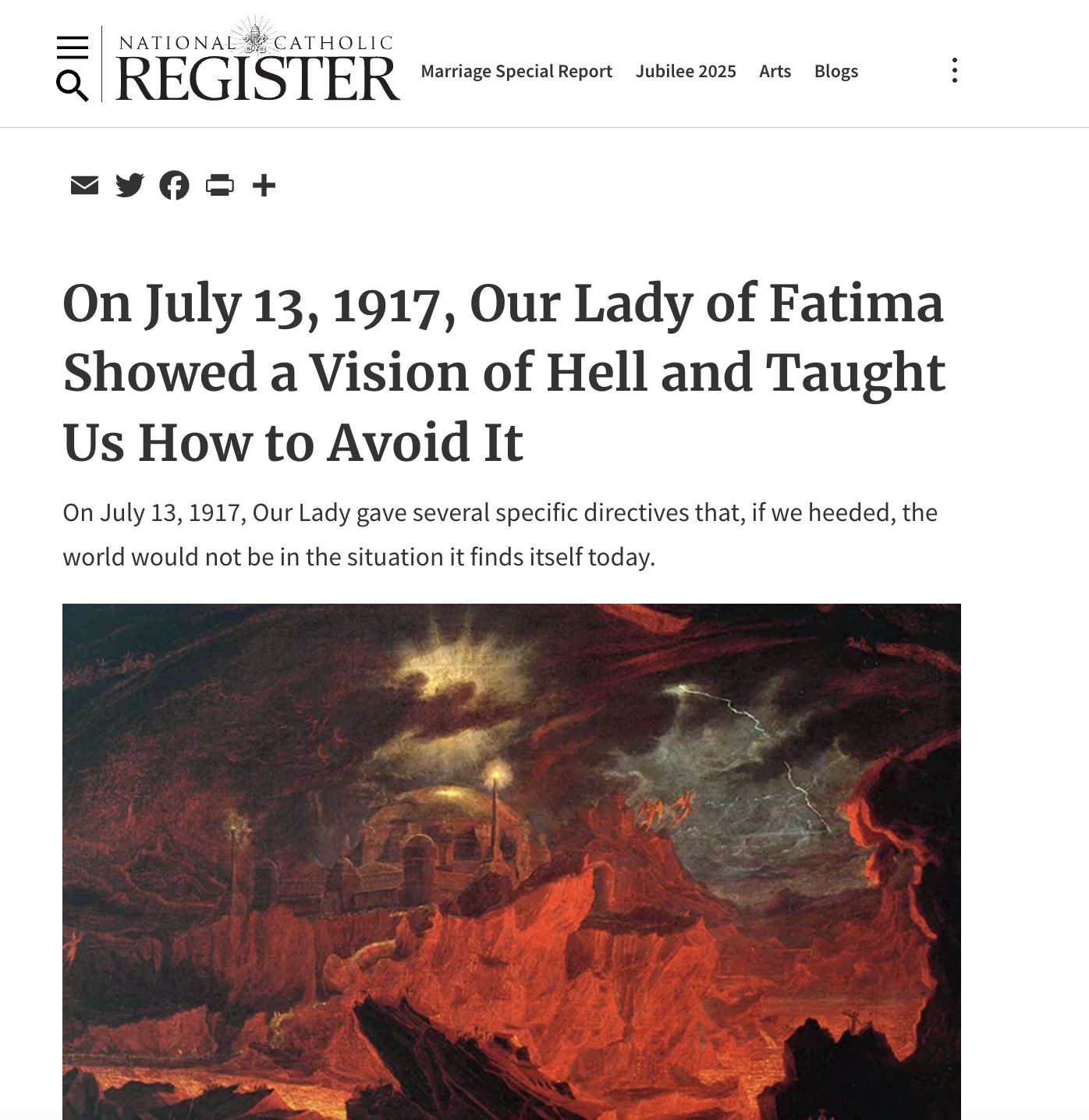 July 13 is also the day in 1917 that Our Lady of Fatima appeared the second time.