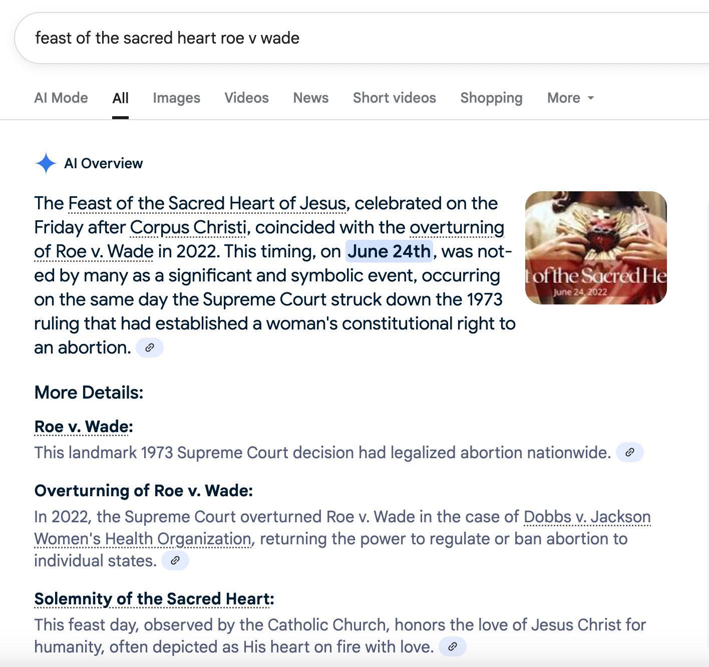 And that's when Roe v. Wade was reversed in 2022, on that feast day.