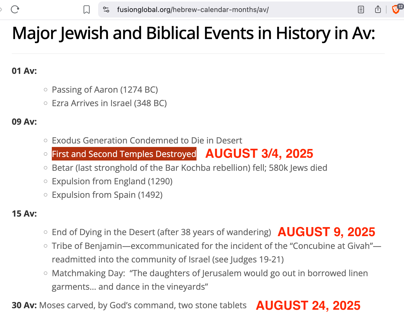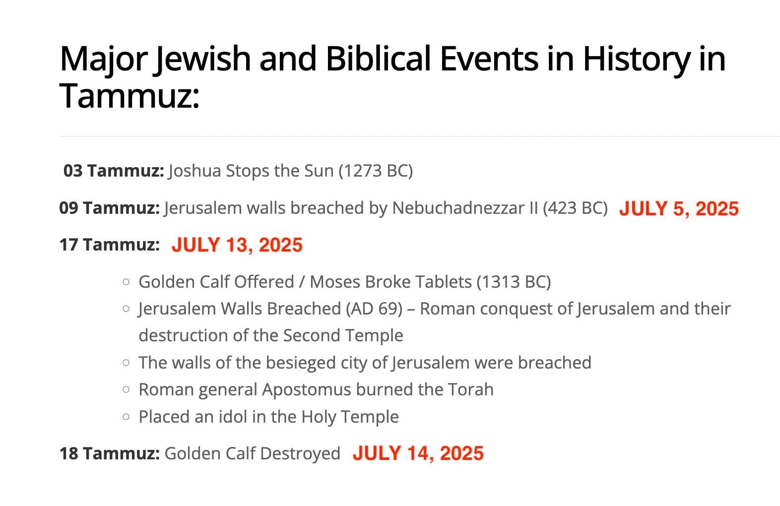 I am going to call this now: I predict that the mass deportations and arrests will line up perfectly with the dates of the destruction of the first and second temple in 587 BC and 70 AD.