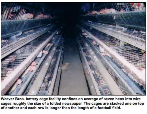 Weaver Brothers Egg Farm has been exposed in undercover investigations that revealed: