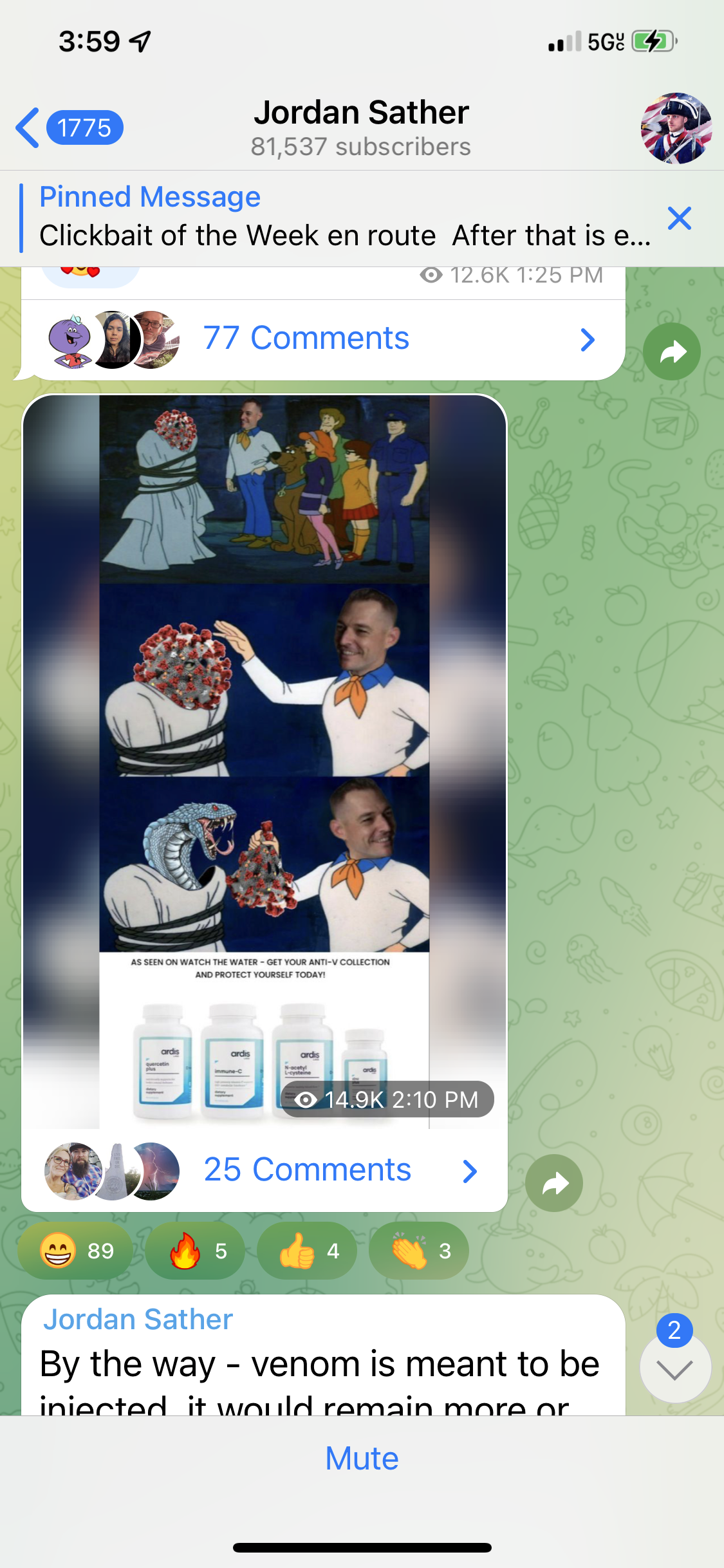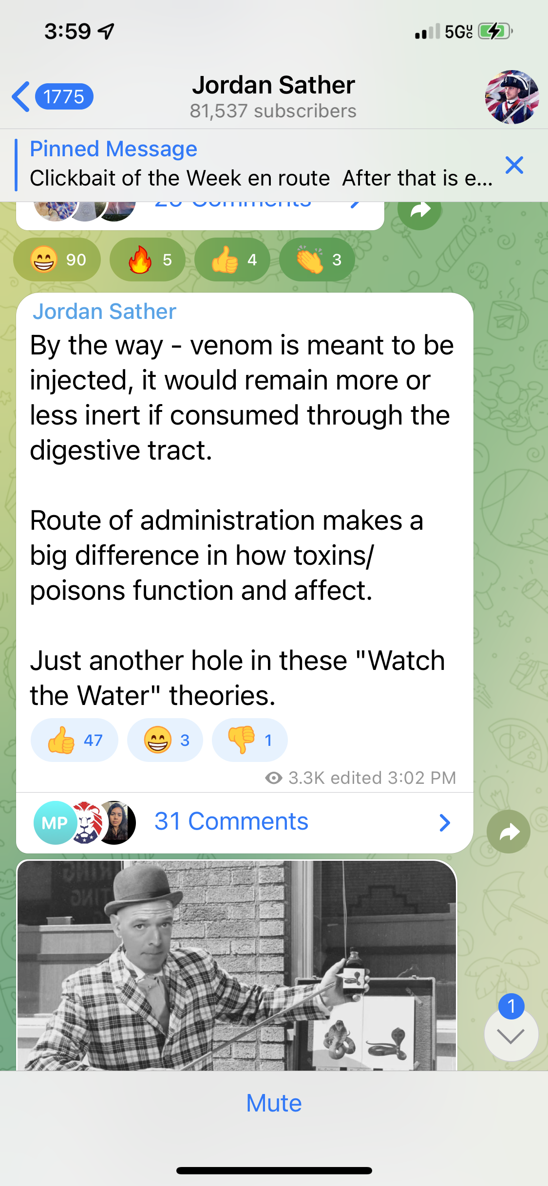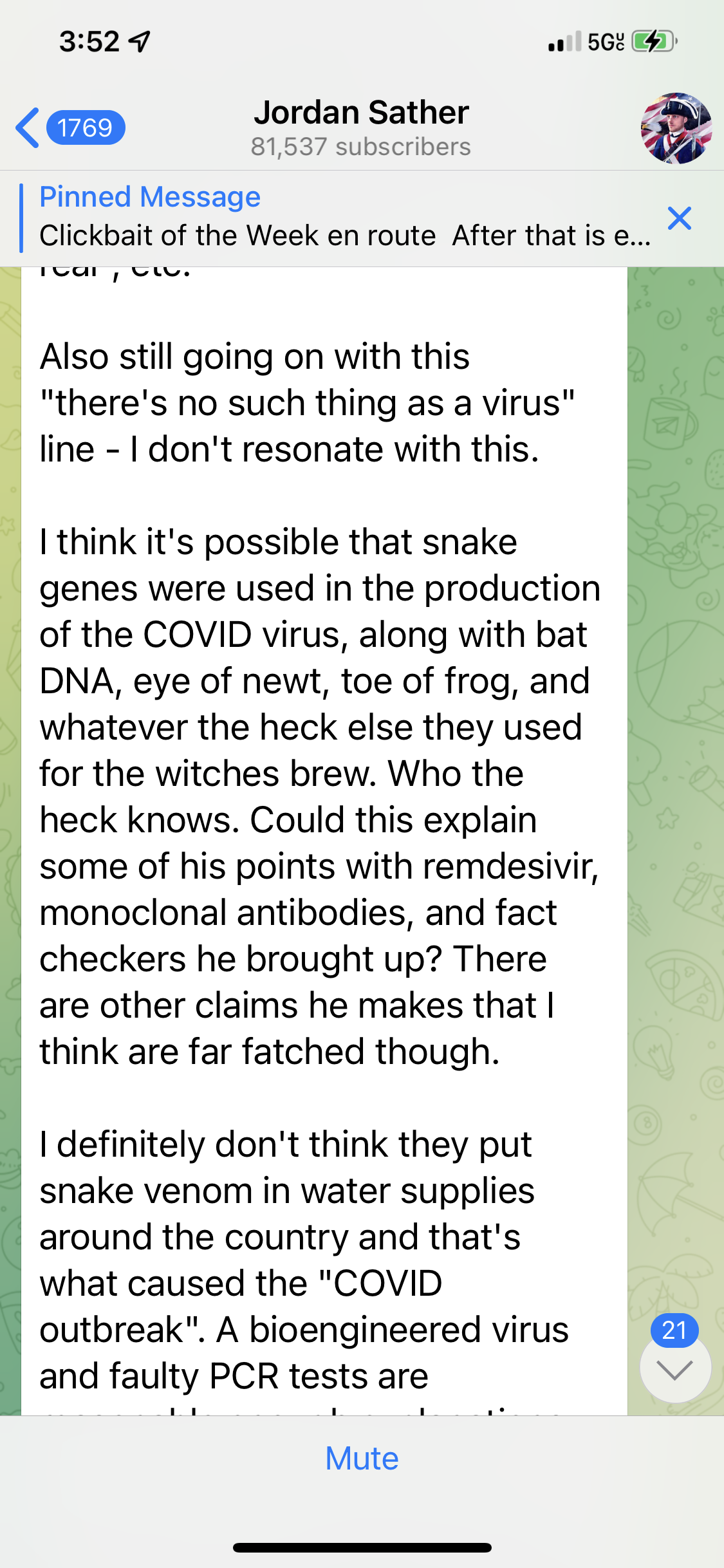 Snake venom is not the psyop. Jordan Sather is the psyop! And I've been saying that for over a year now.