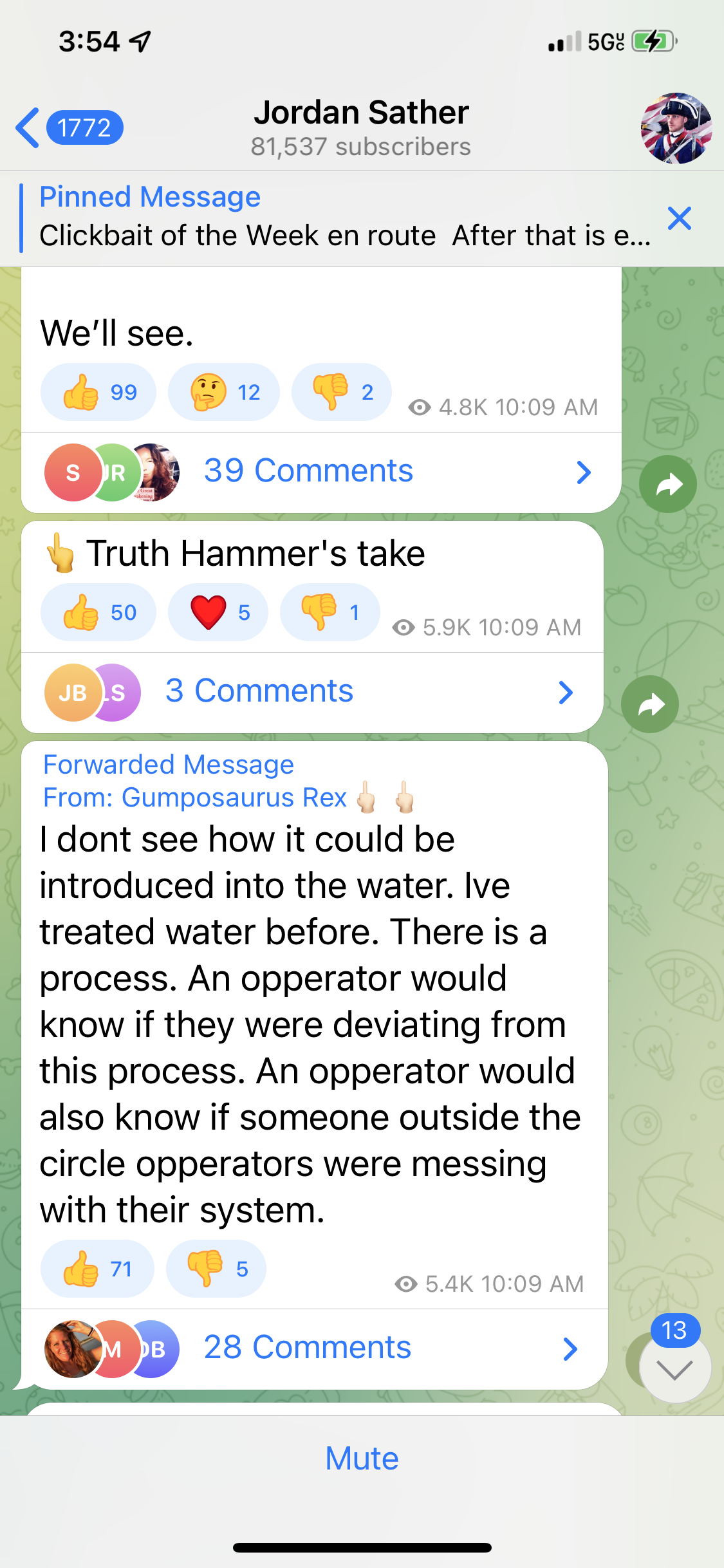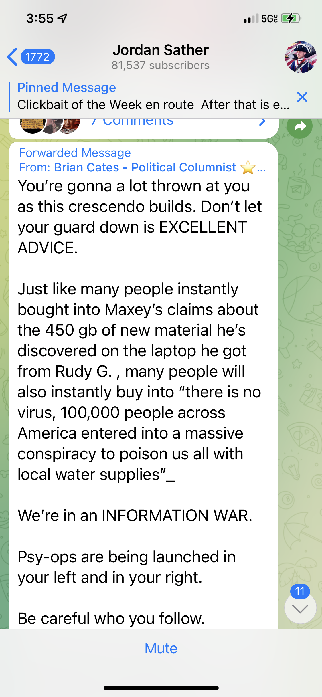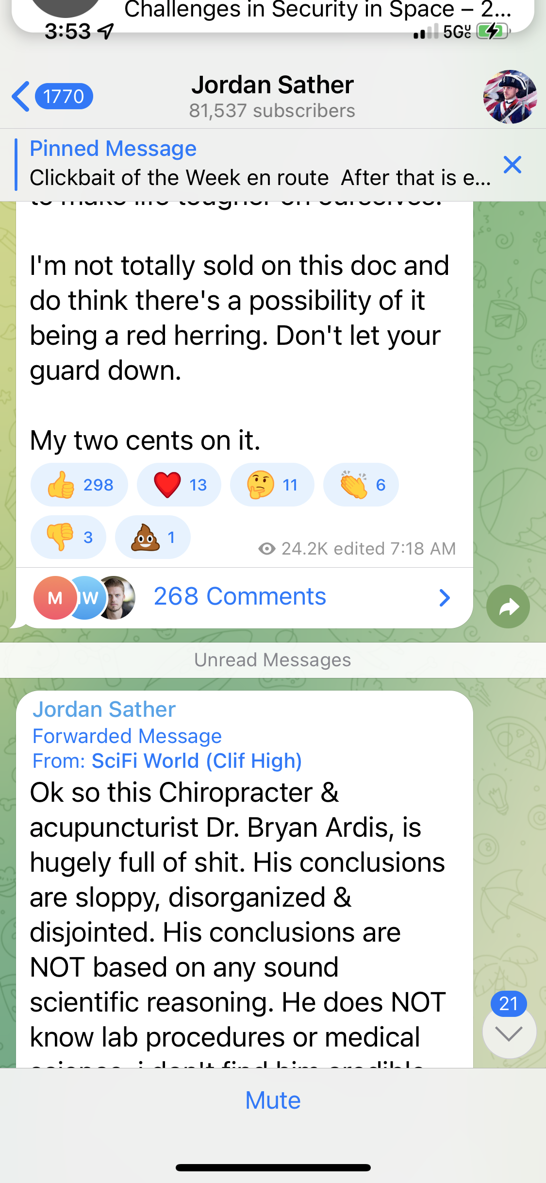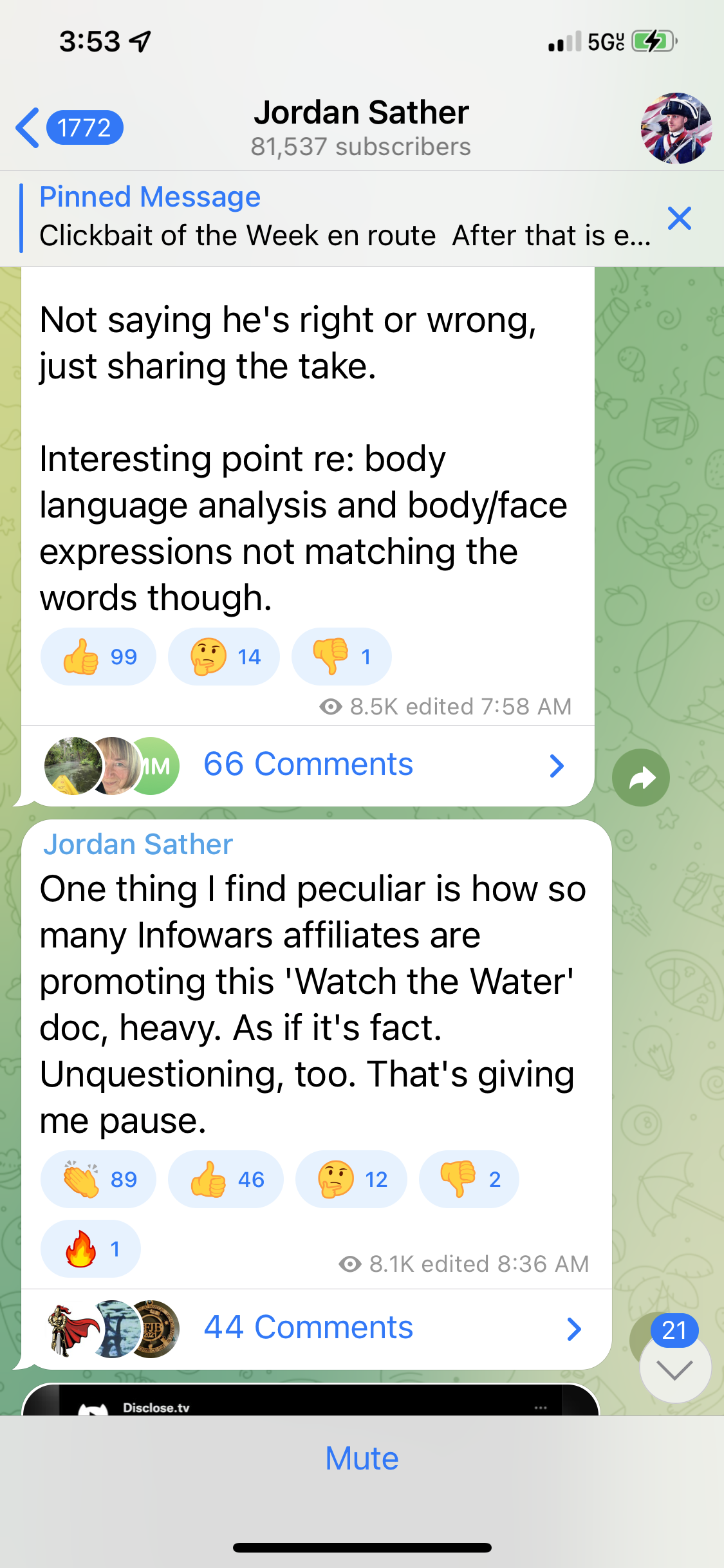 Here are some of his posts on Telegram, pushing the psyop narrative, and personally attacking Stew Peters: