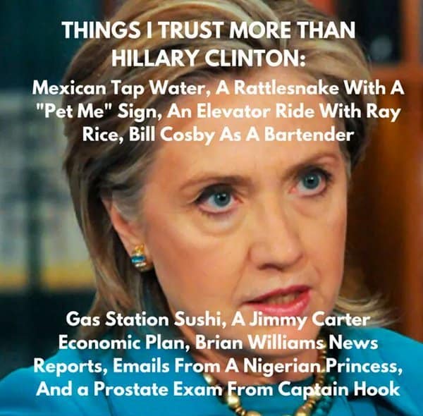 I had done a lot of research on Hillary, and what I found was horrifying. Haiti, Benghazi, the 33,000 emails, her history of covering up for Bill’s history of rape and assault. No way in hell was I gonna vote for her. I smelled a rat.
